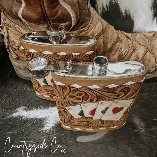 Gambler Tooled Leather Flask by Countryside Co.