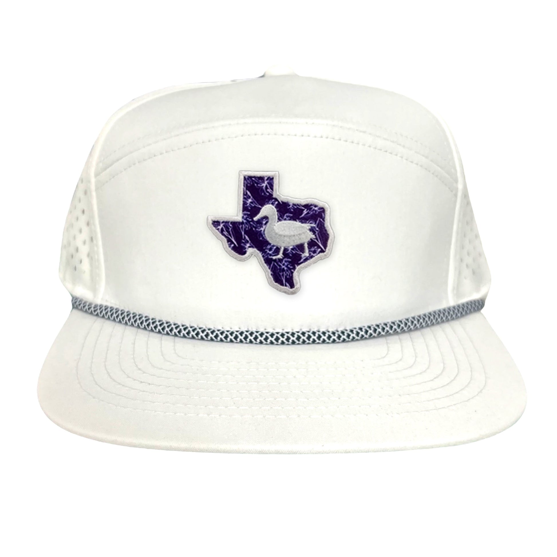 Flat Bill White with Purple Rope Canvas