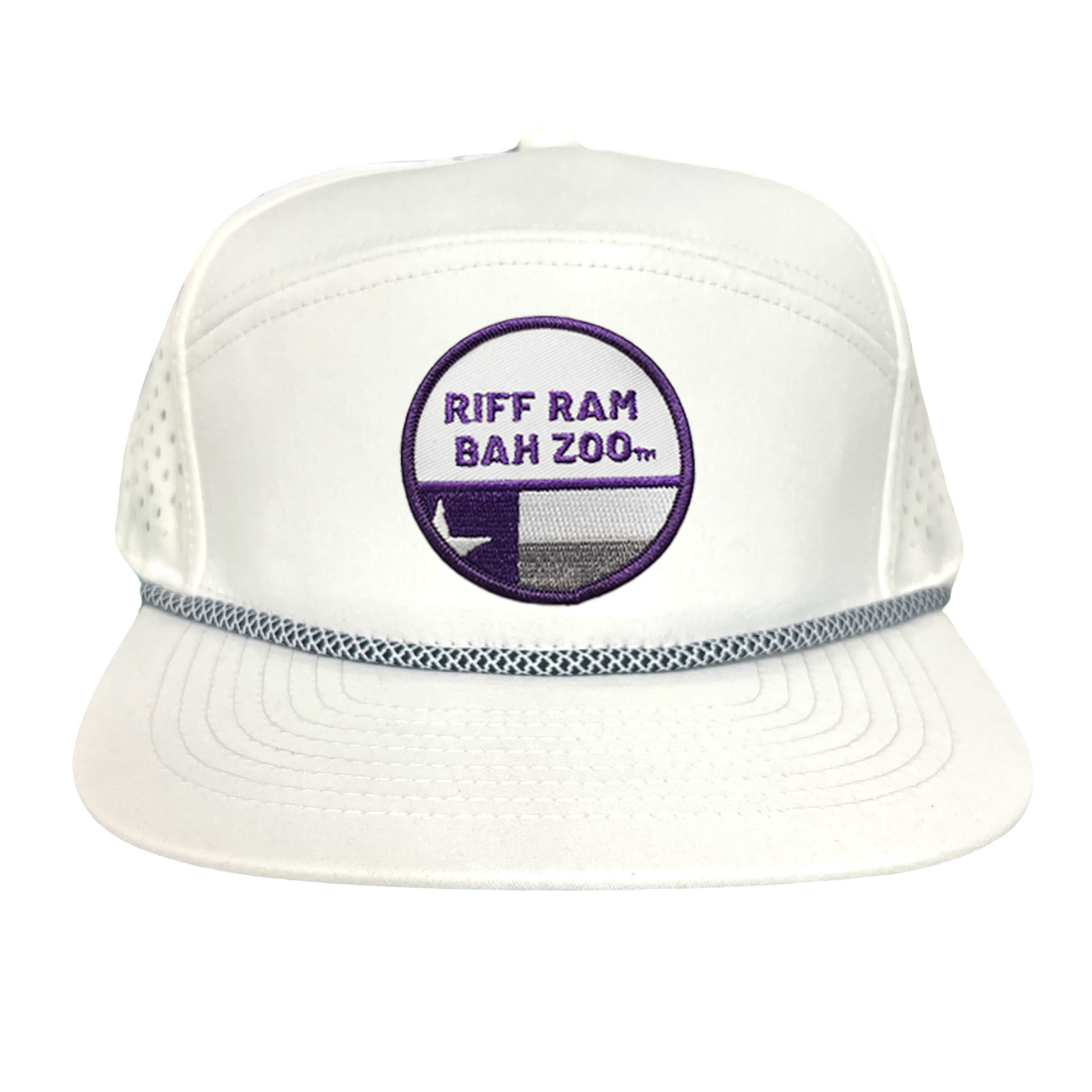Flat Bill White with Purple Rope Mesh Snapback