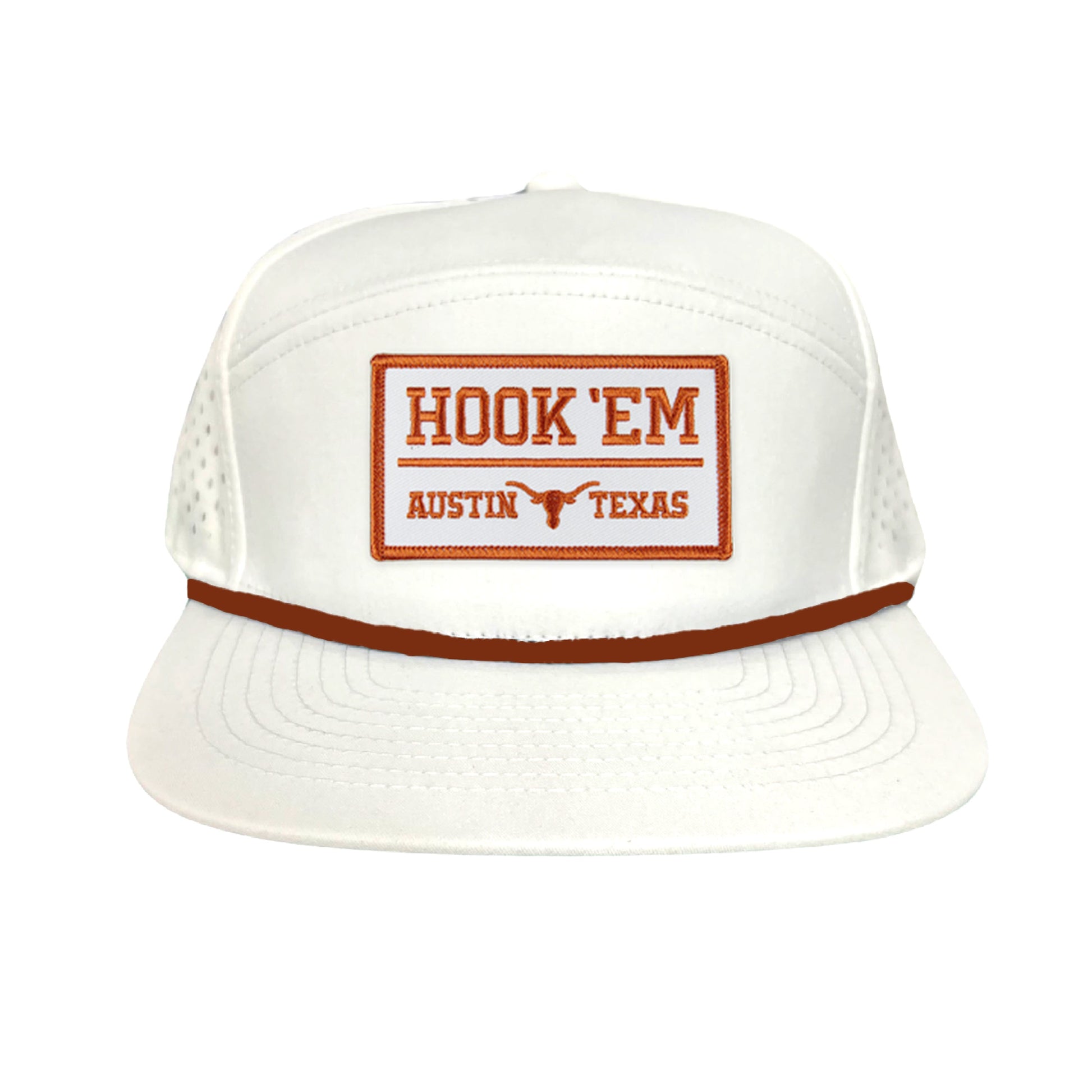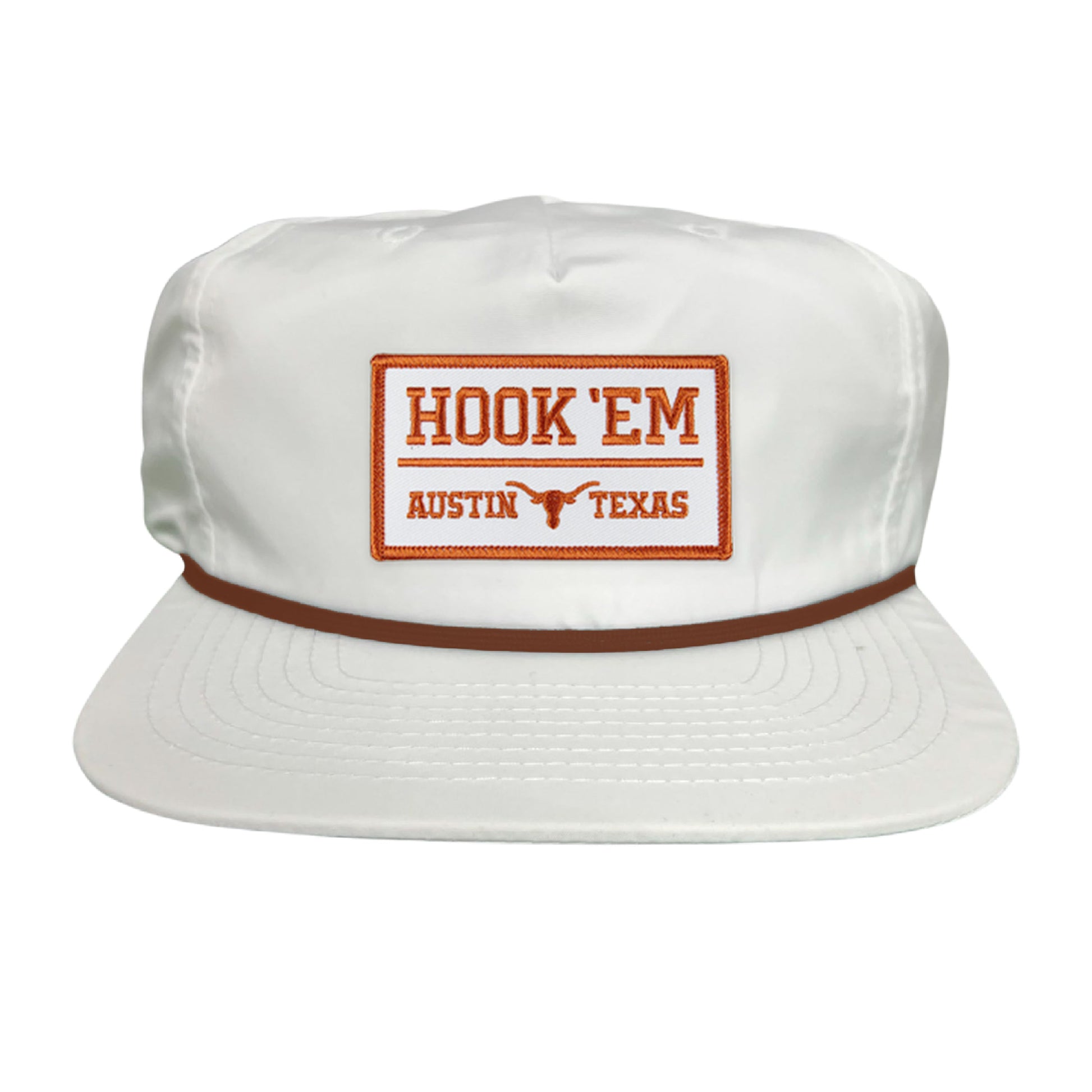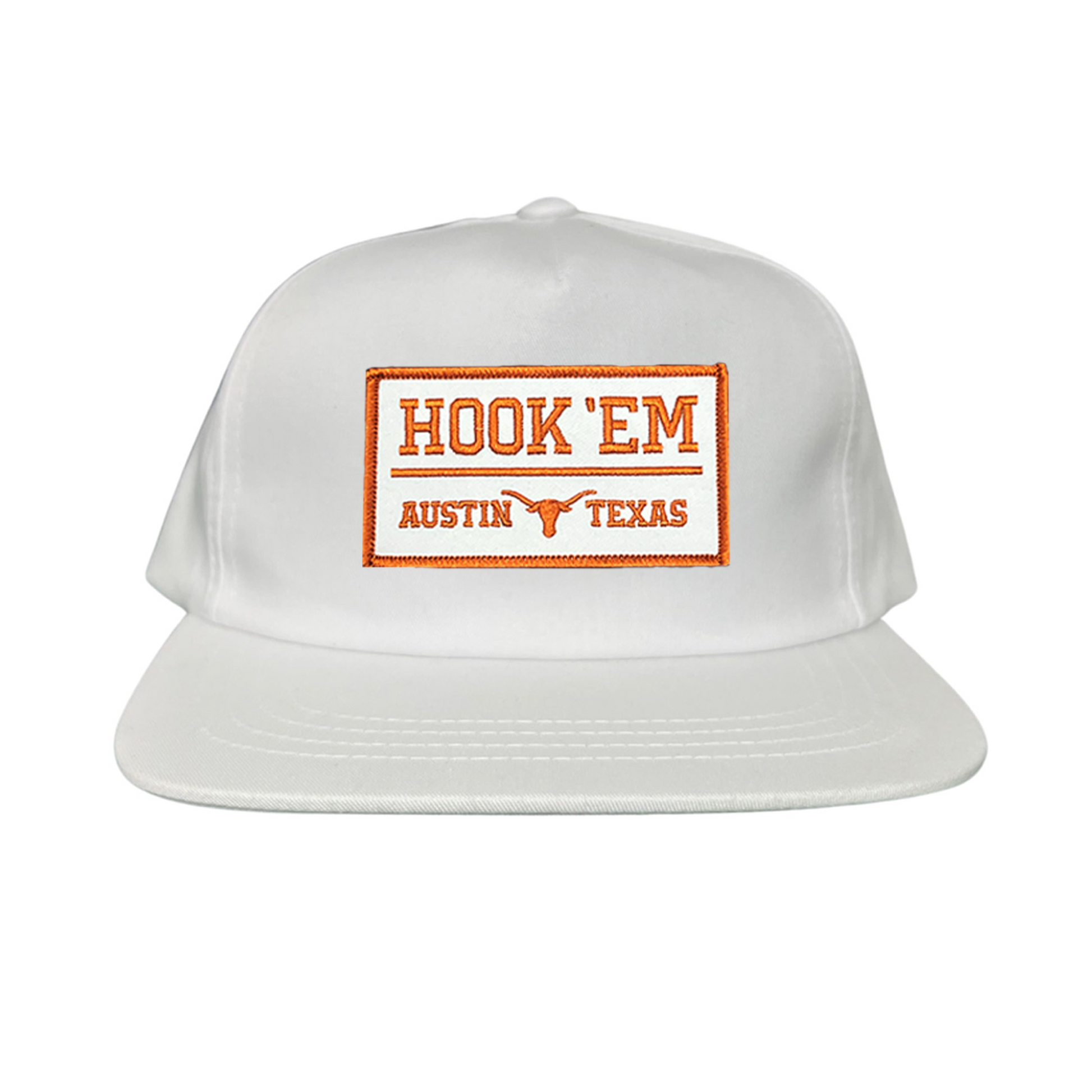 Show your Texas Longhorn pride with this officially licensed Hook'Em Austin Texas rectangle patch. With its white and burnt orange design, this patch will make an eye-catching addition to any hat, backpack, or jacket. Get your patch today and show your school spirit!