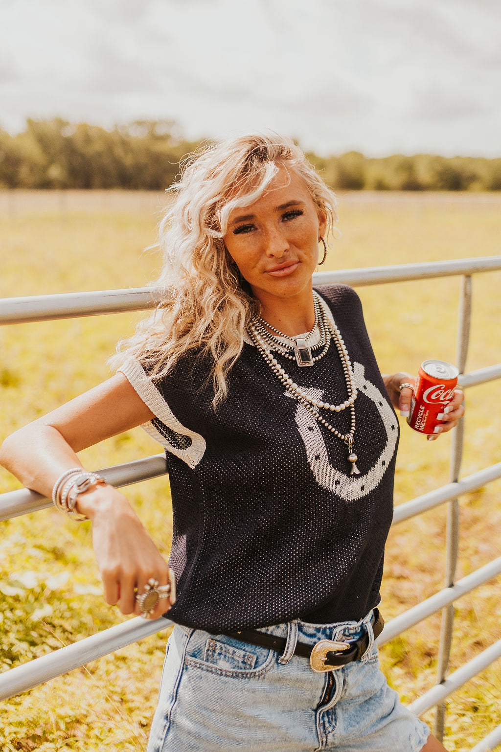 With a soft horseshoe jacquard pattern and laid-back fit, this short sleeve top blends casual comfort with a touch of western charm. Finished with drop shoulders and a classic crew neckline.