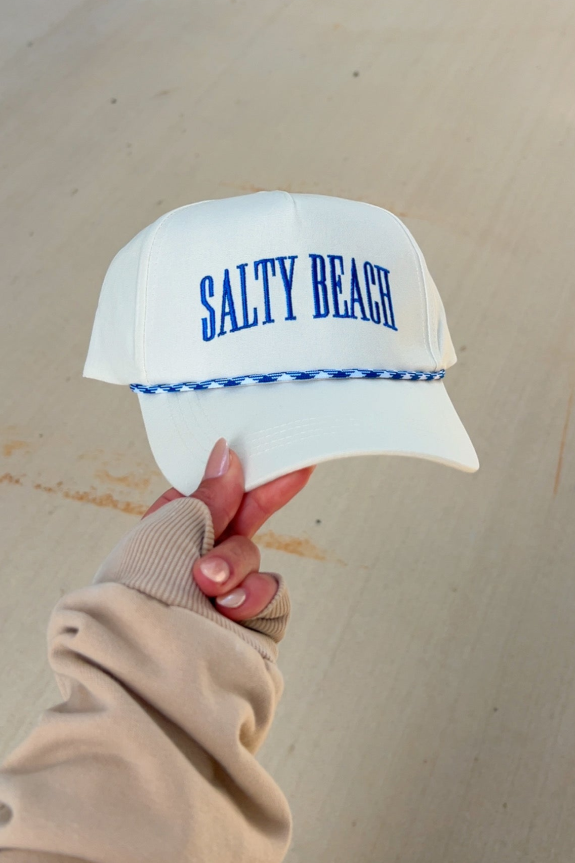 This classic trucker hat features “Salty Beach” embroidery, a breathable mesh back, and an adjustable fit—perfect for beach days, bad hair days, and everything in between.